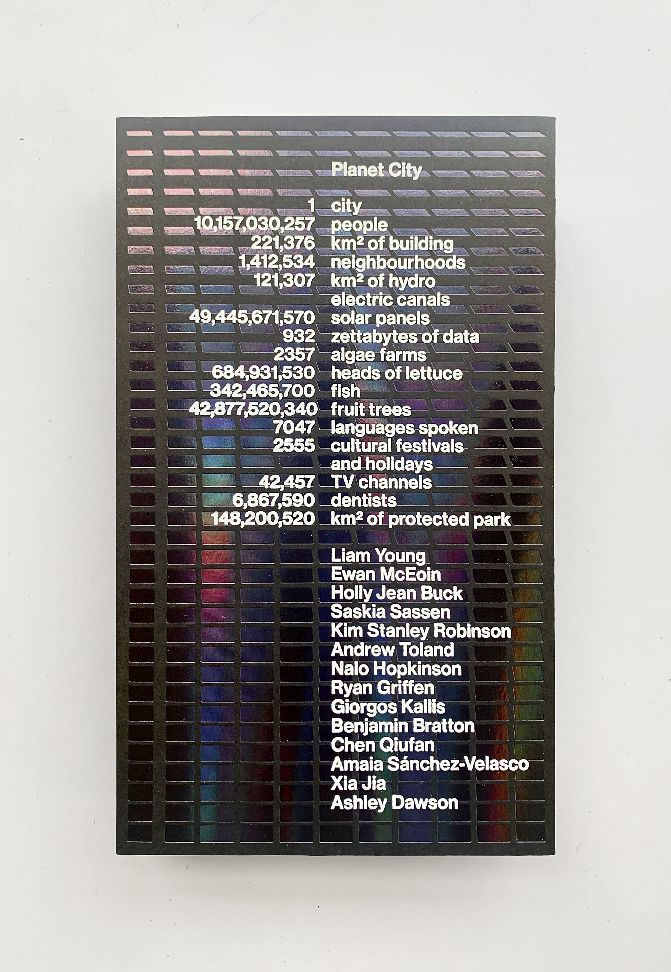 The Planet City book is based on the film by director and designer Liam Young, set in an imaginary city for 10 billion people, who have surrendered the rest of the world to a global scaled wilderness and the return of stolen lands. The work imagines a radical reversal of planetary sprawl, where we retreat from our vast network of cities and entangled supply chains into one hyper-dense metropolis housing the entire population of earth.